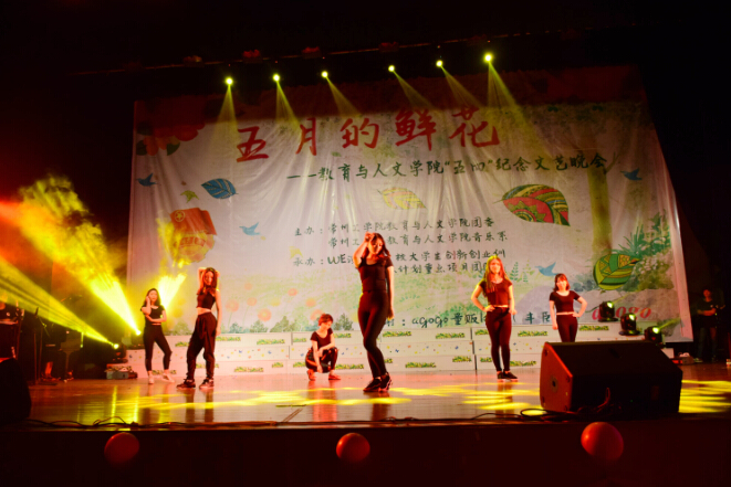 2016年5 月5日晚,由教育与人文学院团委和音乐系主办、校大学生创新创业训练计划重点团队“WE演艺团”承办的“五月的鲜花——教育与人文学院纪念‘五四’运动文艺晚会”在新北校区音乐厅隆重举行,教育与人文学院党委书记杨玲、院长陆克寒、党委副书记张巧凤、副院长乔邦利及全体音乐系教师、辅导员和近500名学生观看了此次晚会。
