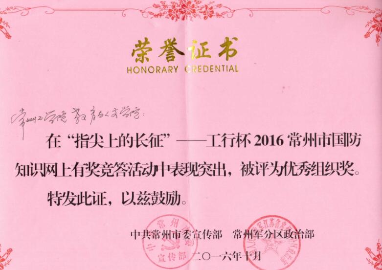 10月22日从江南环球港“常州市纪念长征胜利80周年”群众性主题教育活动现场传来好消息,常州工学院教育与人文学院在“‘指尖上的长征’——工行杯2016常州市国防知识网上有奖问答活动”中表现突出,被评为优秀组织奖。