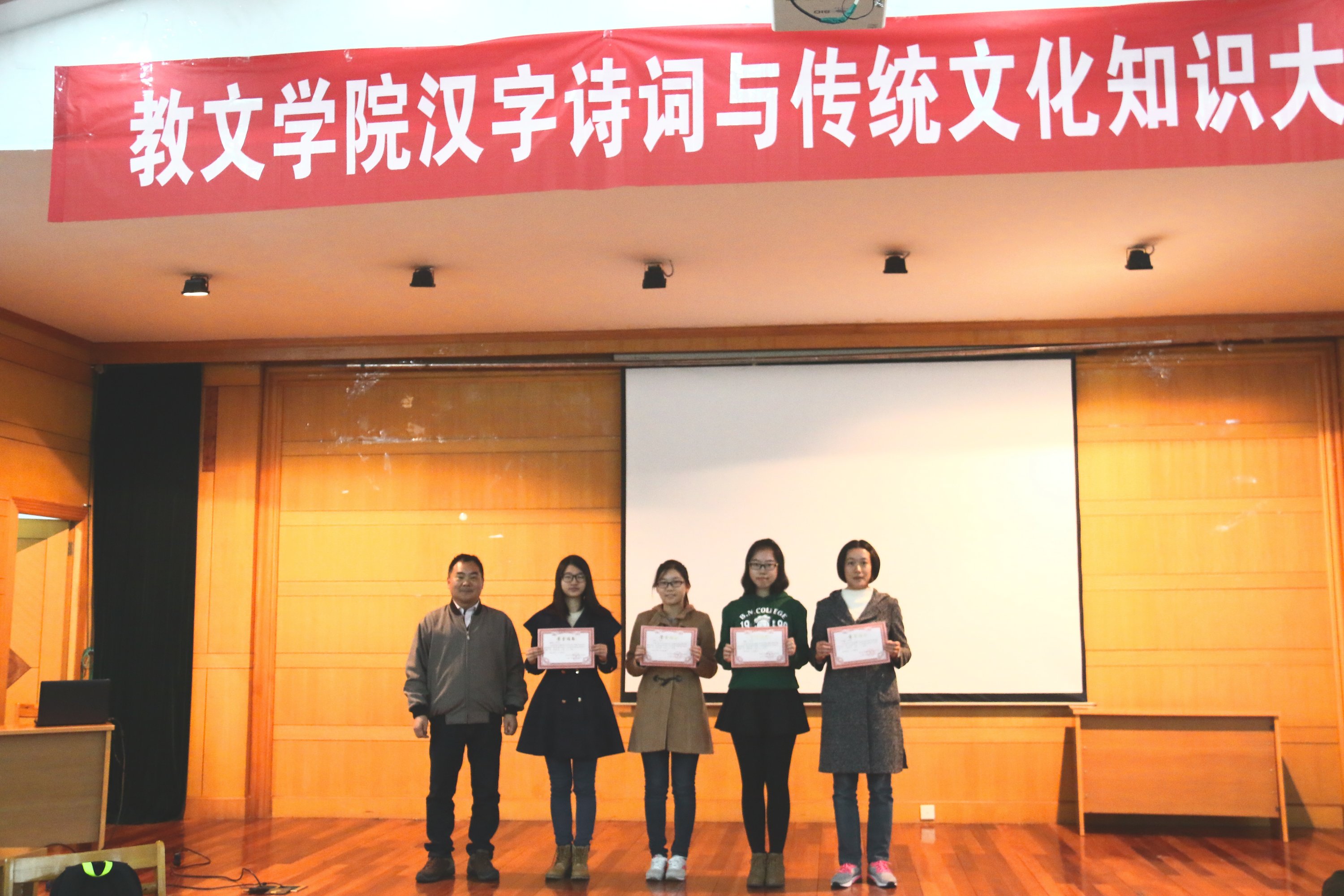 文化是一个民族的身份标志,传统文化是一个国家和民族创造的集体记忆与精神寄托。为了传承和弘扬中华民族的传统文化,树民族之根,提升学生的文化素养和专业技能,我院于2016年11月17号下午举办了2016年学术科技节之诗风词韵中国字:汉字诗词与传统文化知识大赛。副院长乔邦利、团委书记王艳、中文系博士于士倬、朱鹏杰作为评委观看了比赛。