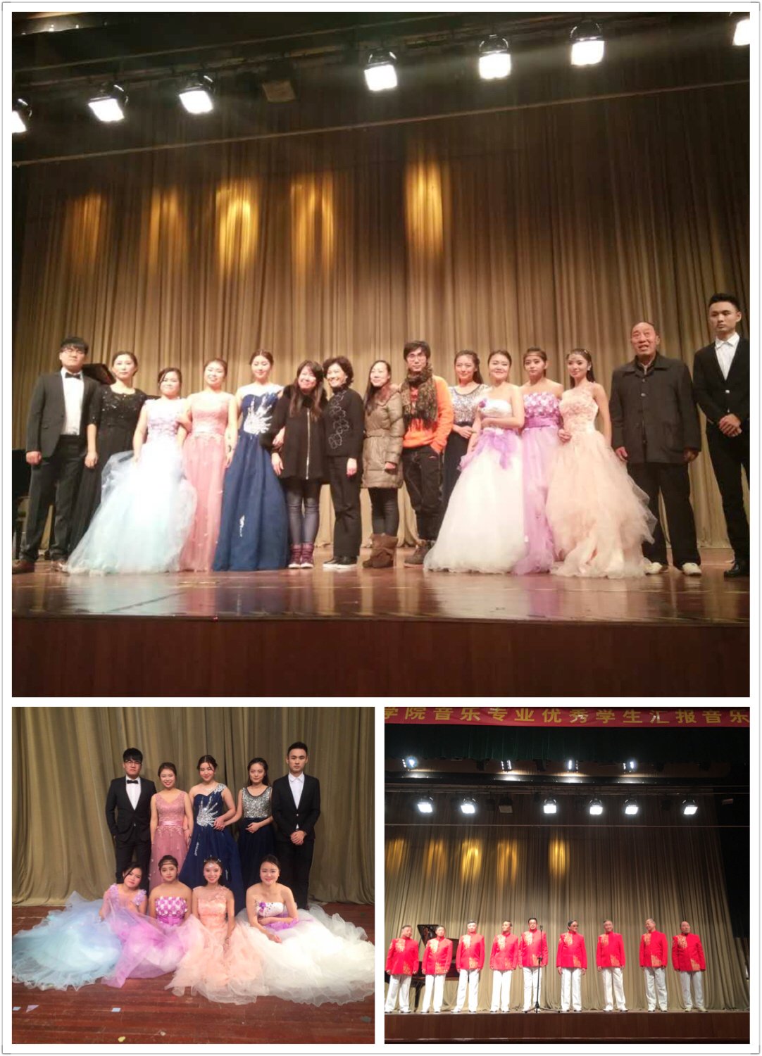 整场音乐会曲目颇丰,题材广泛,风格多样,涵盖了中外艺术歌曲、民歌以及歌剧咏叹调,演唱形式丰富,包括独唱、重唱。整场音乐会由我院青年教师陈桦担任钢琴伴奏。由我院李凌燕、韩云红、陈达三位老师担任此音乐会的指导教师。音乐会在华音合唱团《少林少林》拉开序幕,精神抖索的几位老艺术家的小合唱,带动了全场的氛围。参加本次汇报音乐会的学生,都是由声乐教研室各位专业老师挑选出来的优秀学生,无论是在声乐技巧上还是音乐表达方面,都十分优秀。在演唱中,学生们充满自信,面带微笑,从容的将自己的音乐技能展现给观众,给大家到来了听觉和视觉上的盛宴。让在座的每一位学生都获得了一个学习交流的机会。