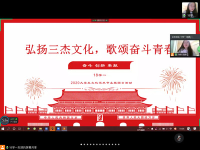 各团支部依托腾讯会议平台、微信群、QQ群开展本次团日活动。本次活动分为在线学习、观看影视视频、诗朗诵表演几个环节。首先,由班级团支部书记通过在线屏幕共享PPT的形式带领大家共同学习了瞿秋白同志的伟大历史事迹。其次,大家共同观看了关于瞿秋白同志革命奋斗历程的影视视频,视频从瞿秋白巧妙翻译《国际歌》开始讲起,讲述了他以自己的一生实践了《国际歌》体现的大无畏革命精神。自己身份暴露,当国民党反动派对他进行劝降时,他断然拒绝,留下了“人爱自己的历史,比鸟爱自己的翅膀更厉害,请勿撕破我的历史”的至理名言。同学们看完感触颇深。
