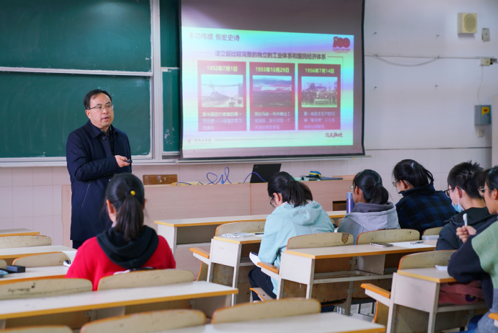 王传金从“丰功伟绩 恢宏史诗”、“精神血脉 代代相传”、“以史为鉴 开创未来”三个篇章,向同学们分别介绍了中国共产党成立以来带领全国人民取得的丰功伟绩,阐述了党百年历史征程中铸就的伟大建党精神的深刻内涵,以及在新的征程上中国共产党要怎样继续领导全国人民取得新的成功,开创美好未来。首先,他以“开天辟地、改天换地、翻天覆地、惊天动地”四个词语概括了中国共产党成立以来取得的丰功伟绩,叮嘱同学们要认真学习党在不同历史时期取得的伟大成绩。接着,他以我党不同历史时期的革命先烈和英雄模范人物为例,向同学们具体阐述了一代代优秀中国共产党人是如何以实际行动践行和发扬伟大建党精神,号召同学们要继续弘扬光荣传统、赓续红色血脉,永远把伟大建党精神继承下去。最后,他以“九个必须”讲解了中国共产党要坚定走好新的历史征程,继续带领人民取得新的历史功绩,号召同学们要坚定理想信念,坚定“四个自信”,练好师范生基本功,勤于追梦、圆梦,努力为社会主义现代化建设作出积极贡献。