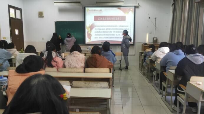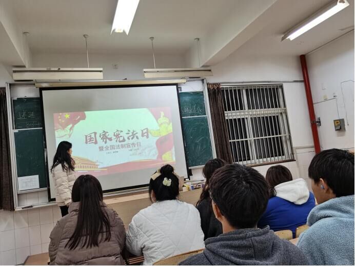 各班结合自身特点,开展了形式多样的主题班会。有的班级通过“学宪法、讲宪法”内容来开展,班级同学根据自身实际和现实情境,讲认识,谈体会;有的班级通过生动详实的案例,开展宪法学习相关问题的讨论;有的班级则通过集中观看宪法主题纪录片、以宪法内容练习书法等方式来学习宣传宪法。