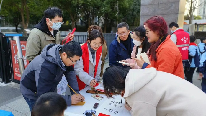 在现场,小学教育专业的志愿者发挥专业优势,进行书法撰写,并向现场的社区居民普及了基本书法知识,号召学习弘扬中华优秀传统文化;学前教育专业的志愿者发挥手工制作专业特长,将书法小作品制作成了精致的雷锋语录书签。志愿者们以实际行动践行着雷锋精神,助力社区“微梦行”公益集市开市,引导社区居民弘扬“奉献、友爱、互助、进步”的时代新风。