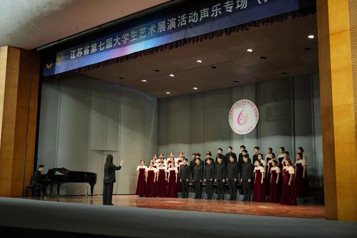 11月16日下午,师范学院星光艺术合唱团参演的作品《惊雷》,参加了江苏省第七届大学生艺术展演声乐大合唱项目比赛。师范学院音乐系姜新子、杨丽莉、张璇、徐忆巍等四位老师作为指导老师带队参加了本次比赛。