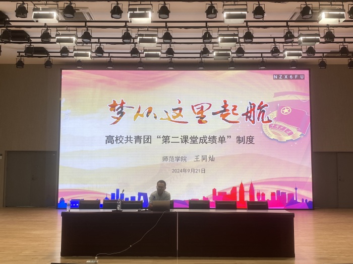 为帮助2024级新生深刻了解第二课堂实践的意义和内涵,切实提升学院实践育人水平,9月21日,师范学院在粹化楼音乐厅举办了“第二课堂实践”教育专题培训。院团委书记王同灿主讲,2024级全体新生参加了会议。