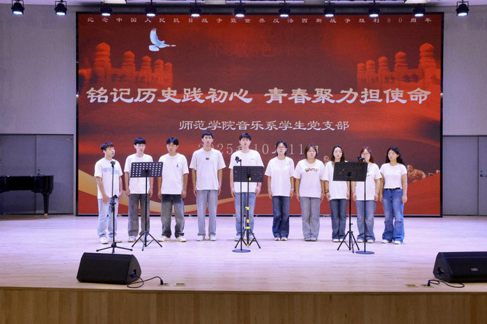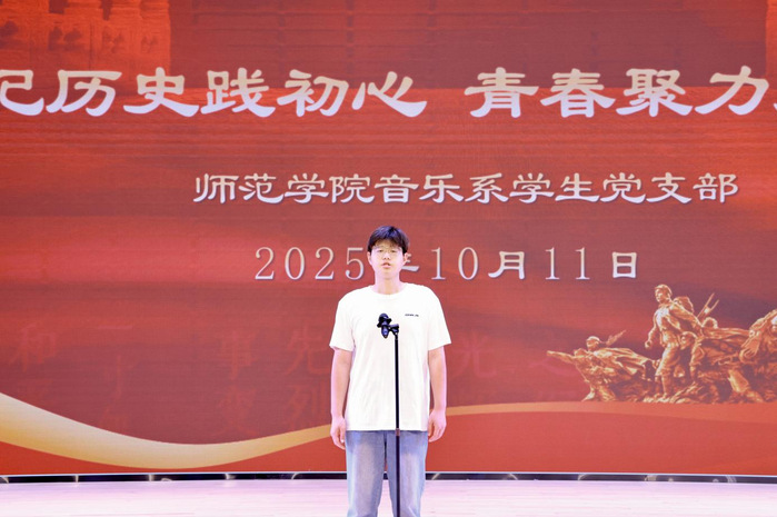 为深刻铭记历史、传承红色基因,音乐系学生党支部以习近平总书记在纪念中国人民抗日战争暨世界反法西斯战争胜利80周年大会上的重要讲话精神为指引,10月11日,组织师生党员开展了“铭记历史践初心,青春聚力担使命”爱国主义教育主题党日活动。