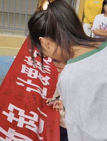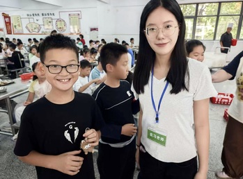 在见习小学的活动现场,团员们通过生动有趣的PPT,向小学生讲解粮食的重要性;在 “粮食知识问答” 环节,“世界粮食日是哪一天?”“我们常吃的粮食有哪些?” 等问题引发孩子们踊跃举手,现场氛围热烈。为让节约理念落到实处,团员们还在小学食堂设立 “光盘行动” 宣传点,通过赠送小奖品,鼓励孩子们吃完餐盘里的食物,并用相机记录下孩子们“光盘” 后的笑脸,让 “不浪费一粒粮食” 成为自觉行动。活动最后,团员们与小学生共同在 “节约粮食,从我做起” 横幅上签名,一笔一划的签名,既是孩子们对节约粮食的郑重承诺,也是师范学子传递社会责任的生动体现。