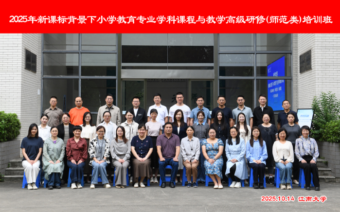 为应对少子化社会转型、数智时代人才培养等现实挑战,推动小学教育专业建设与课程教学改革创新,10月14日至17日,由省教育厅主办的“新课标背景下小学教育专业学科课程与教学高级研修班”在江南大学教育学院(人文学院)举办。来自江苏省内本科院校近40名小学教育专业骨干教师参加研修。我院小学教育系系主任王健参加了此次培训班。