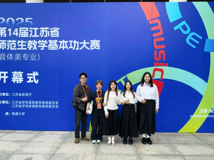 近日,第十四届江苏省师范生教学基本功大赛(音乐组)在南通落下帷幕。我院音乐系选派三名学生,由姜新子和鲍子苑两位教师带队参赛。在10月17日至19日为期三天的赛程中,三名学生沉着应战,展现出扎实的专业素养与良好的精神风貌,顺利完成了全部赛程,积累了宝贵的实战经验。