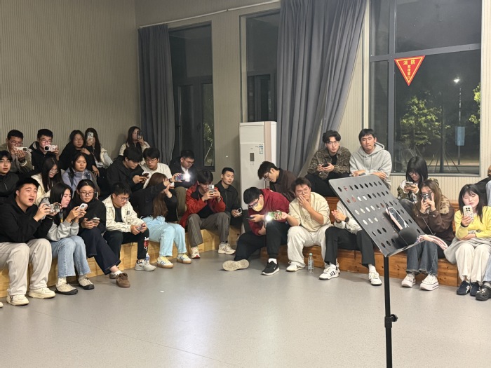 本场音乐会以“韶华时光”为主题,旨在通过音乐的艺术形式,展现当代大学生的精神风貌与情感世界。活动采用自愿报名的方式,得到了同学们的积极响应与踊跃参与。舞台上,同学们纷纷一展歌喉,表演形式丰富多样,既有深情款款的个人独唱,也有默契十足二人对唱。一首首熟悉的流行旋律在教室中回荡,唱出了青春的多样色彩。歌曲主题包罗万象,既有对校园生活的深情记录,也有对珍贵友情、纯真爱情的细腻刻画,更饱含着对家乡与亲人的深切思念。同学们稳健的台风和真挚的情感表达,深深感染了现场的每一位观众,不断将现场气氛推向高潮,教室内欢声笑语不断,掌声雷动。整场音乐会历时两小时,最终在热烈与不舍的氛围中圆满落下帷幕。