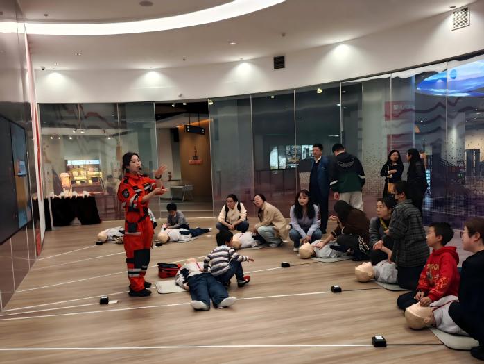 活动首站来到迪诺水镇,充满童趣的恐龙主题氛围瞬间驱散工作疲惫,大家漫步其间,享受难得的休闲时光。大家前往恐龙人防灾避险体验馆和生产安全实训馆,开启了本次活动的“安全学习篇章”。在专业培训师的引导下,老师们沉浸式学习火灾急救逃生技巧,从识别安全出口标识到正确使用灭火器,捂住口鼻低姿前行,每一个步骤都细致演练。模拟地震体验区里,随着地面轻微晃动,大家在培训师指导下掌握伏地、遮挡、手抓牢的自救要点,真切感受到灾害来临时冷静应对的重要性。大巴涉水急救、地铁失火逃生等场景模拟,让老师们直观了解不同灾难环境下的避险策略,实用的知识让“安全第一”的理念深深扎根。心肺复苏教学环节中,老师们踊跃参与实操,在专业人员的手把手指导下,从判断意识、开放气道到胸外按压、人工呼吸,认真掌握每一个急救动作,为守护自己与他人的生命安全增添了重要技能。大家认真聆听讲解、反复练习动作,将应急救护知识牢牢掌握,为自身与他人安全增添一份保障。