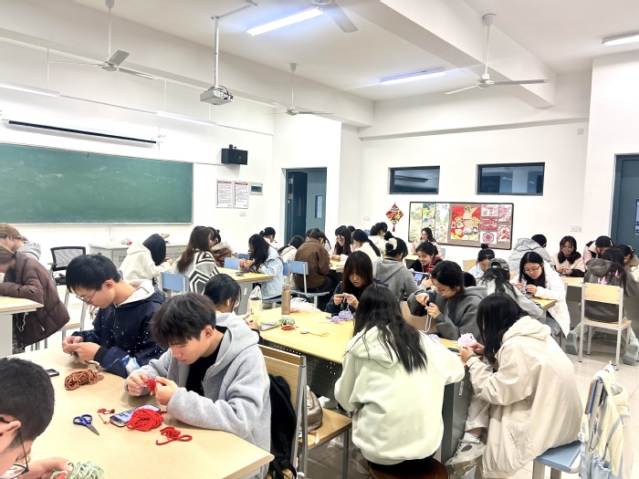 活动伊始,钩针手工负责人现场演示泡芙花挂饰的钩织针法。从起针的基础绕线手法,到线圈疏密的把控技巧,再到泡芙花花瓣的立体编织要点,负责人逐一步骤拆解讲解,还不时走到同学身边手把手指导,确保每位参与者都能跟上节奏、掌握关键技巧。
