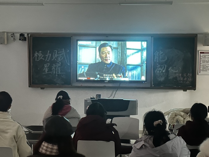 活动中,同学们签到后领取科普手册,主持人开场强调新时代认知核能的重要性及“两弹一星”精神对青年的感召力。在科普宣讲环节,宣讲人通过图文PPT,以通俗语言讲解核能原理、安全保障及发电、医疗等领域应用,结合“人造太阳”等重大科技项目,消除认知误区,激发探索兴趣。最后,全体同学观看了人物传记电影《邓稼先》,影片展现“两弹元勋”隐姓埋名、奉献祖国核事业的感人事迹,同学们被老一辈科技工作者的家国情怀与奉献精神深深震撼。