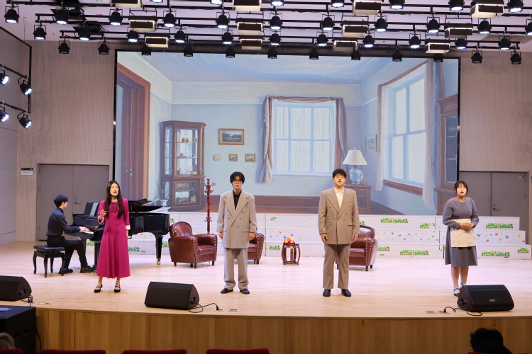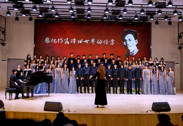 特别值得一提的是,本场音乐会重磅呈现了入选江苏省科学家精神舞台剧推广项目的原创小歌剧《归去来兮·华罗庚》,讲述了数学家华罗庚放弃美国的优厚待遇,毅然归国报国的事迹。1950年2月,华罗庚在归国途中写下了《致中国全体留美学生的公开信》,他在信中说道:“梁园虽好,非久居之乡,归去来兮”,“为了抉择真理,我们应当回去;为了国家民族,我们应当回去”。同学们用精湛的表演,生动塑造了科学巨匠的形象,传递了深邃的科学家精神,赢得了满堂喝彩。一首首动人的旋律,或激昂,或婉转,唱响了属于青春的坚韧与勇敢,音乐会在温暖而充满力量的氛围中圆满落下帷幕。