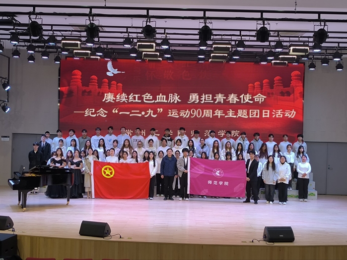 为纪念“一二·九”运动90周年,厚植青年学子爱国情怀,12月9日,师范学院团委在粹化楼音乐厅开展了“赓续红色血脉,勇担青春使命”信仰公开课暨纪念“一二·九”运动90周年主题团日活动,活动由25音乐一班、25音乐二班,25音乐三班承办,80余名师生参加了本次活动。