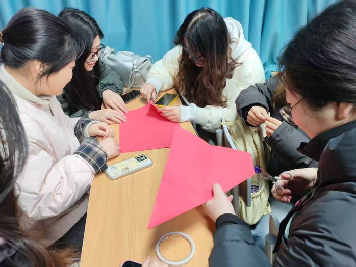在“改革印记”创意手工环节,团员们发挥专业优势,运用红色卡纸进行剪纸与拼贴创作,将对改革精神的理解转化为富有童趣与象征意义的艺术作品。