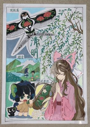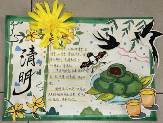 本次活动面向学院全体学生开展,采用线上报名、线下提交作品的参与形式,得到了同学们的踊跃响应。大家以纸为媒、以剪为笔,将对清明的理解与创意融入作品之中,通过实物作品、创作图片及视频等多种形式提交成果。同学们的创作构思精巧、风格各异,既有描绘春日柳绿花红、踏青赏春的灵动景致,也有寄托对革命先烈、先辈先贤缅怀之情的深情之作,还有融合清明诗词、民俗元素的创意设计,每一件作品都饱含巧思与真情。
